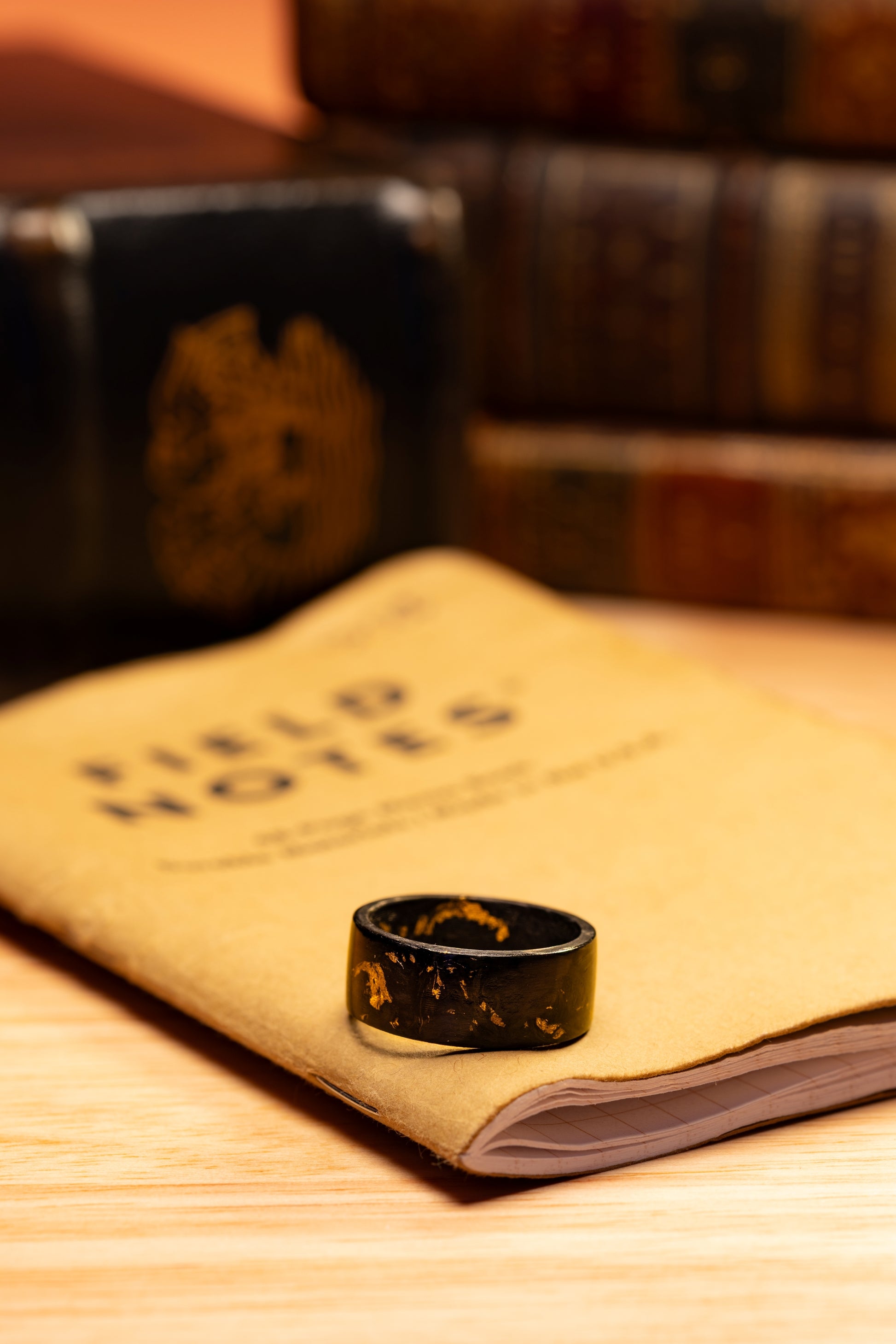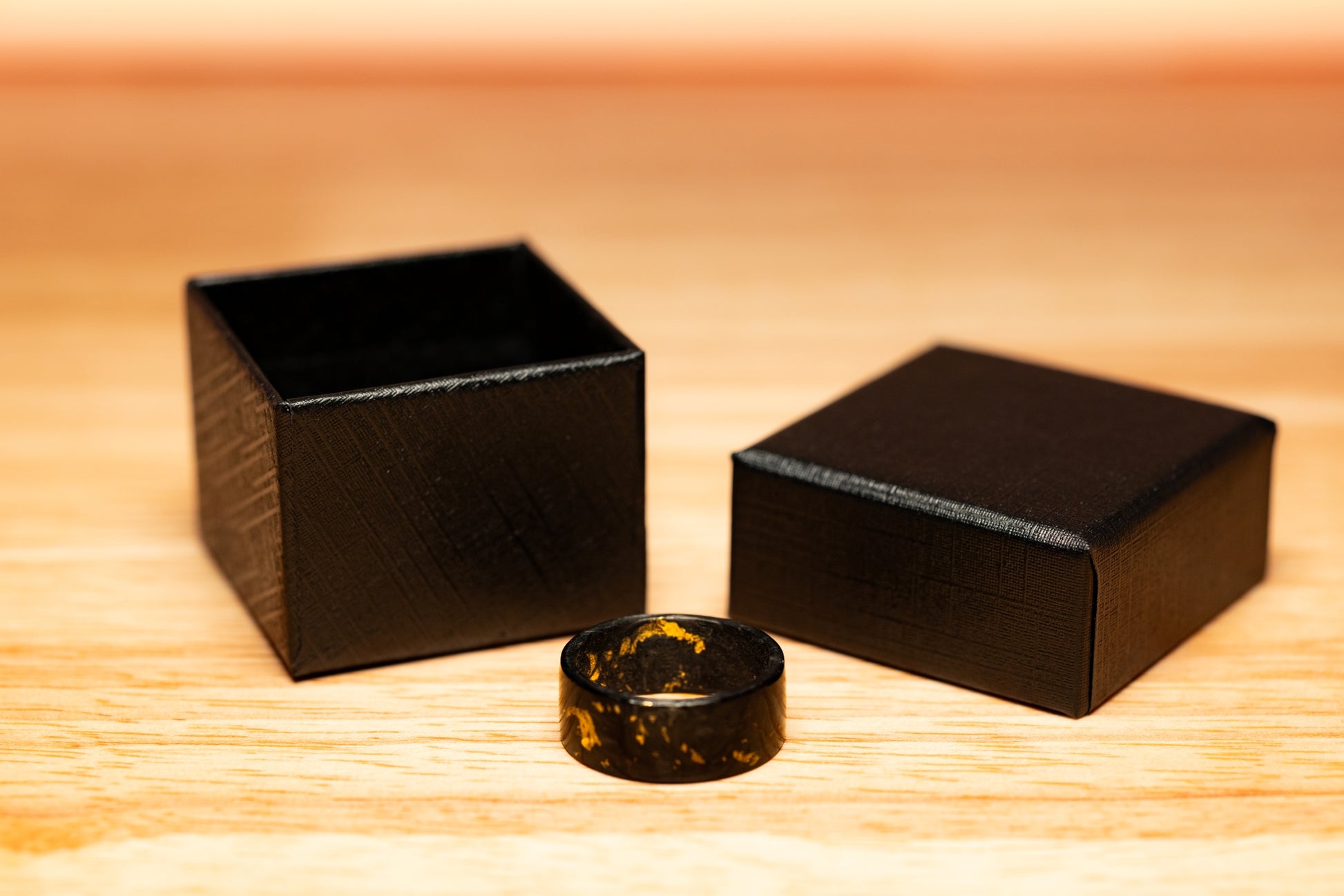 Forged Carbon Fiber Ring with Gold Leaf Flakes – Handmade Carbon Fiber Jewelry